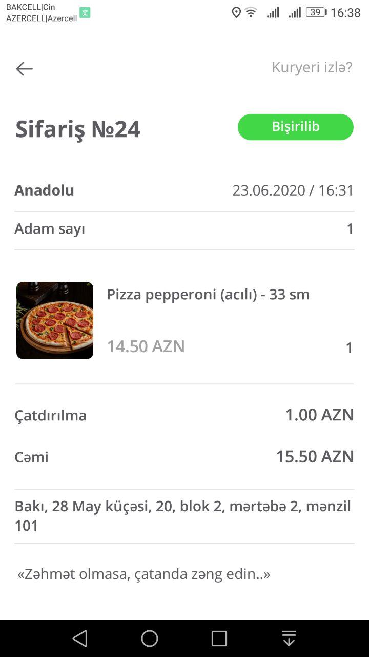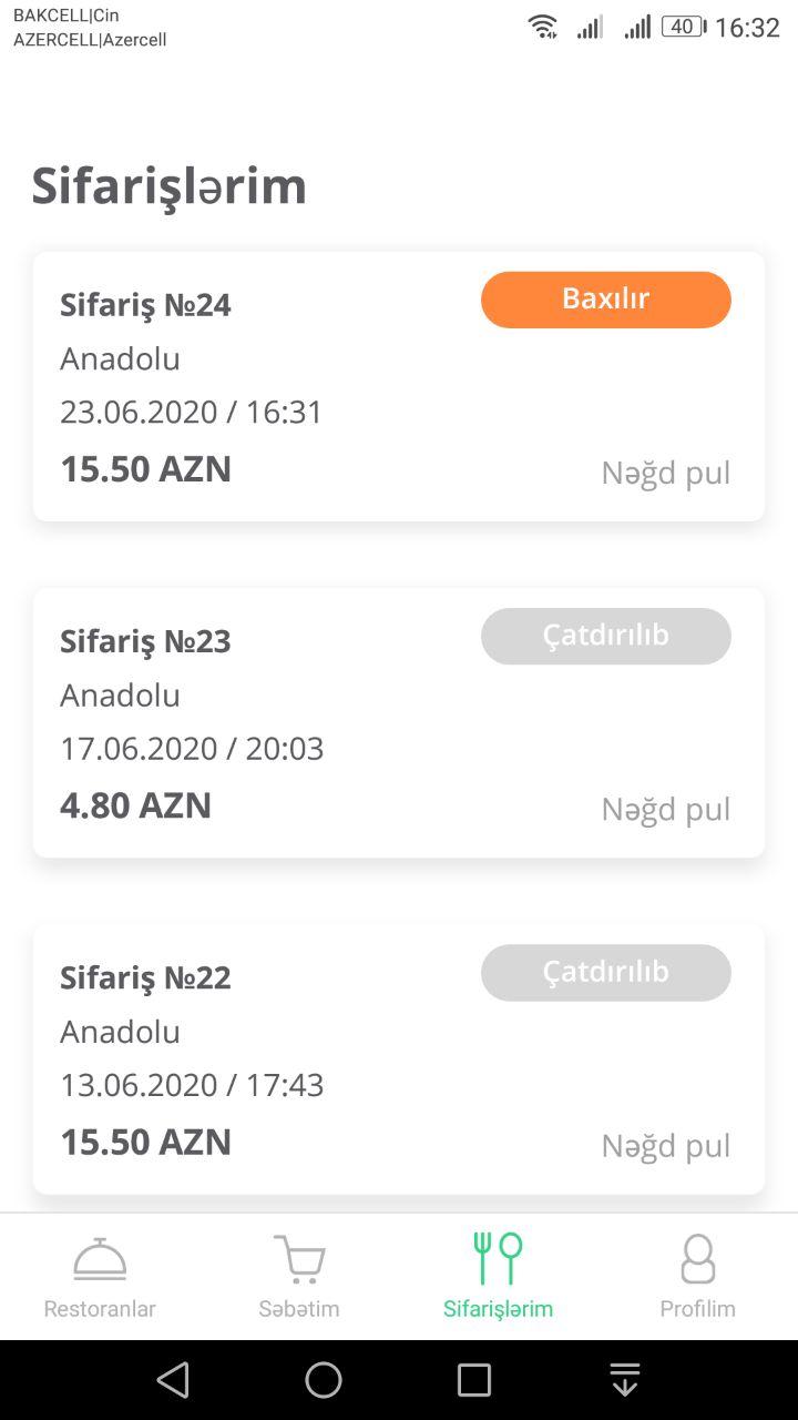 Mobil tədbiqimiz sifarişlərinizin hazırlama mərhələri barədə məlumatlandırır və kuryeri izləmək imkanı verir.