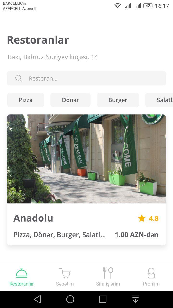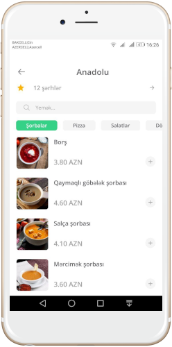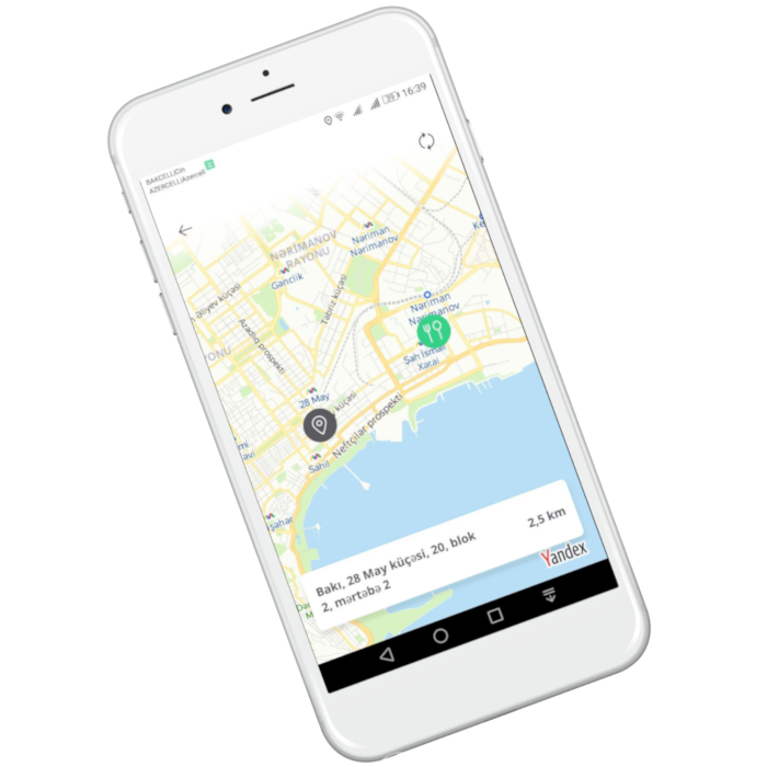 Mobil tədbiqimiz sizin ünvanı avtomatik tapır və axtarışınıza müvafiq restoran və kafelərdən asan sifariş imkanı yaradır.